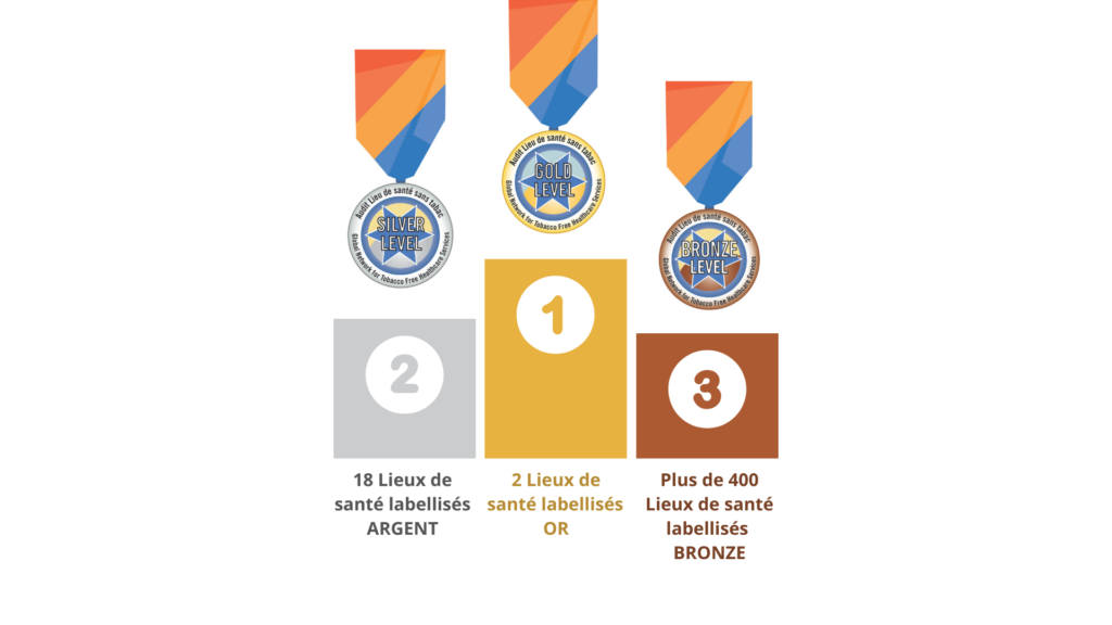 Chiffres clés Le podium LSST Plusieurs centaines de Lieux de santé engagés :plus de 1500 Lieux de santé accompagnés ;plus de 600 Lieux de santé financés ;plus de 50 signataires de la charte LSST. Des bases de données uniques collectées :plus de 1500 répondants à l’Audit LSST ;plus de 60 000 questionnaires recueillis dans l’enquêtes Tabagisme en blouse blanche. Des journées de partage à toutes les échelles :2 colloques nationaux ;5 colloques inter-régionaux ;14 colloques régionaux. De plus en plus de professionnels formés au Repérage précoce et intervention brève (RPIB) en tabacologie :plus de 600 formateurs formés pour diffuser les savoirs et savoir-faire ;plus de 6 000 professionnels formés pour les mettre en pratique.